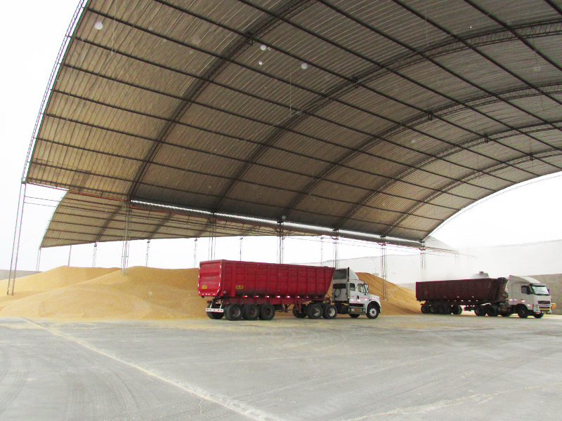 En HKS nos encargamos de la gestión logística en la importación de commodities, insumos industriales y fertilizantes en general. Atendemos también al sector agroindustrial, avícola y ganadero. ALMACENAMIENTO DE GRANOS Y FERTILIZANTES Para el almacenamiento de granos y fertilizantes contamos con 5,000 M2 losa bajo techo (en construcción) con una capacidad instalada de 13,000 TM., así mismo 15,000 M2 losa intemperie con una capacidad instalada de 39,000 TM., dentro de los principales productos que recepcionamos se encuentran el maíz, torta de soya, trigo, y cebada. Tenemos gran conocimiento en el almacenamiento de productos y control de estándares sanitarios y de calidad .
